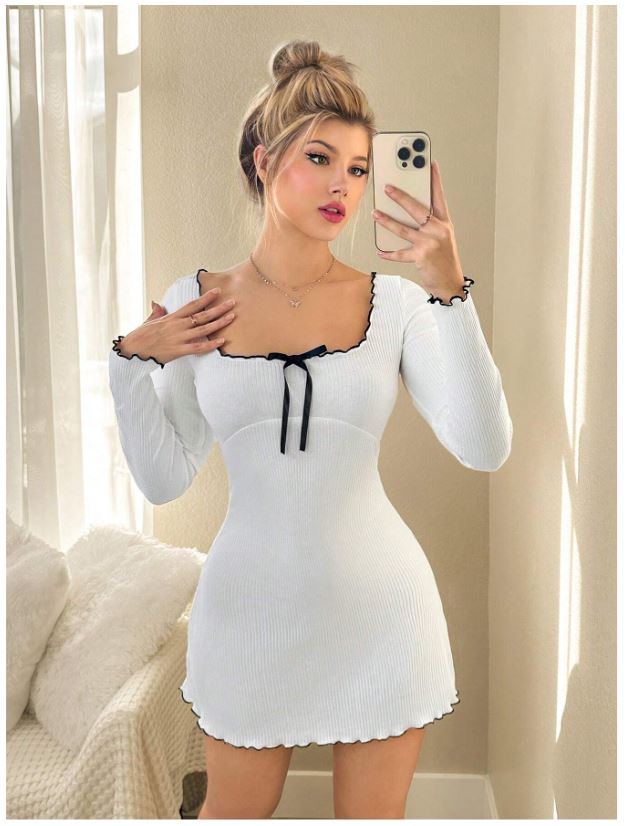 Be the first to review “Bodycone Pico Long Sleeve Contrast Trim Casual White Square Neck Bow Dress, Minimalist & Fashionable for Everyday Wear” Cancel reply