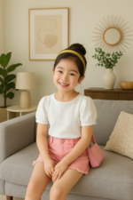 Keep your little one looking cute and comfortable with this baby girl’s puff-sleeve top. Made from soft, breathable cotton blend fabric, this top is gentle on delicate skin while providing all-day comfort. The simple yet stylish design features short puff sleeves and a classic round neckline, making it easy to pair with shorts, skirts, or jeans. Perfect for everyday wear, playdates, and special occasions, this top adds a touch of charm to your baby’s wardrobe.