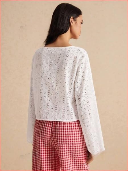 JC JUMMY COUTURE Best Women Summer Casual Party Wear White Embroidered Cotton Shirt Top