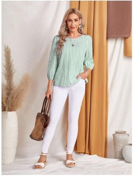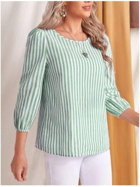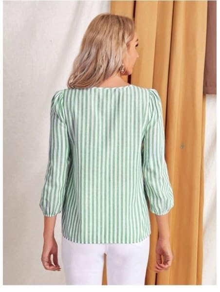 JC JUMMY COUTURE Striped Print Round Neck Blouse,Three Quarter Sleeve Green Tops