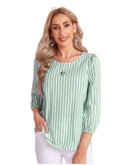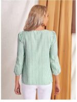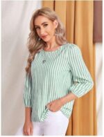 Be the first to review “JC JUMMY COUTURE Striped Print Round Neck Blouse,Three Quarter Sleeve Green Tops”
