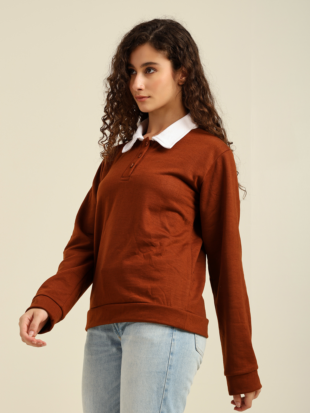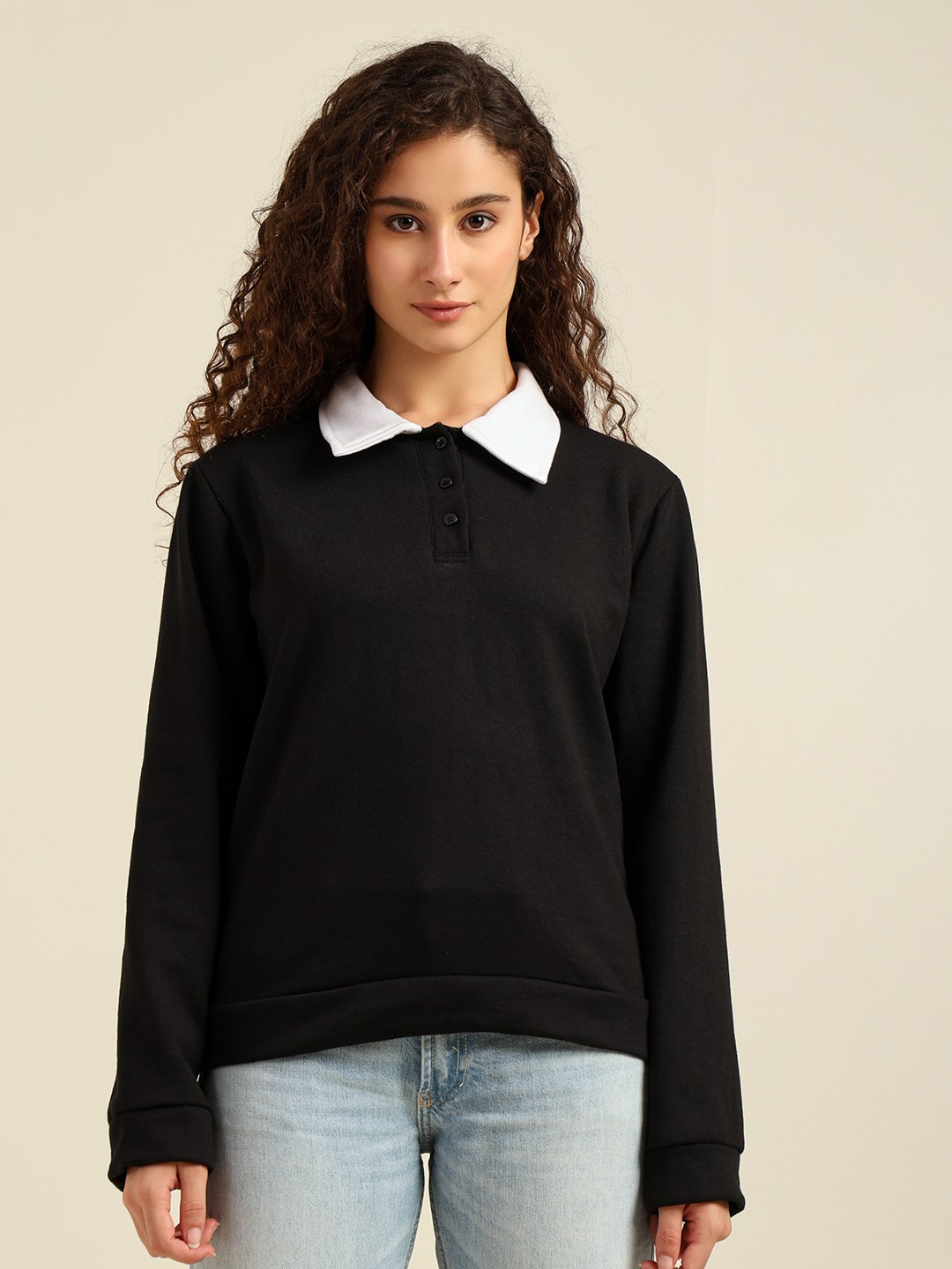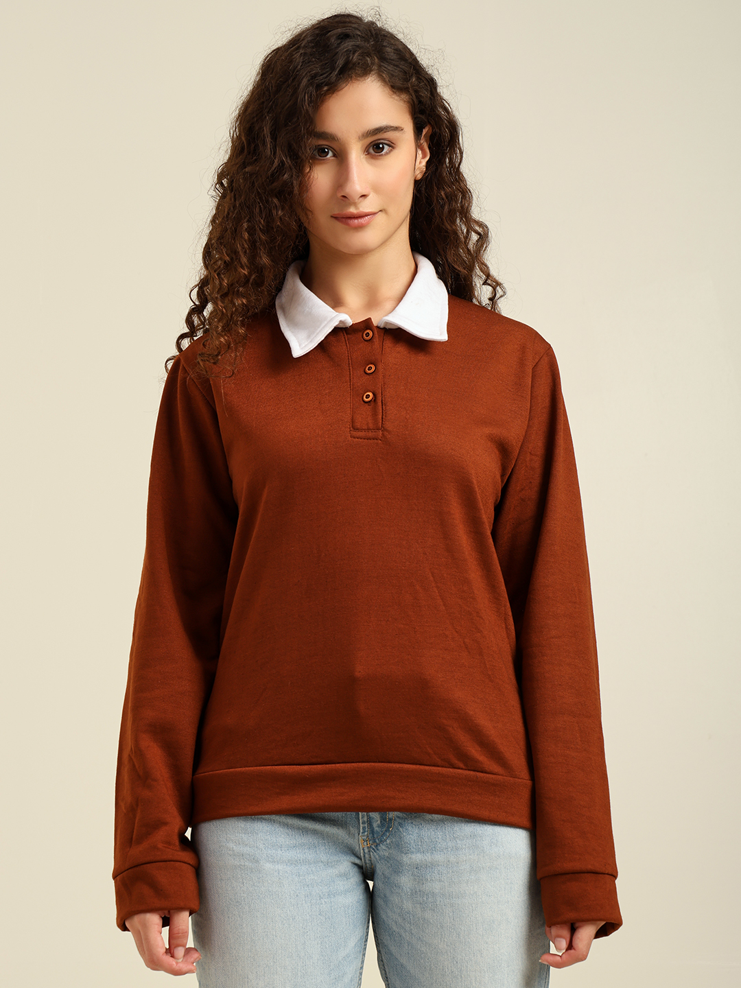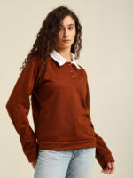 Be the first to review “Women’s Casual Polo Collar Sweatshirt with Full Sleeves – Stylish Solid Pullover (Black/Brown)” Cancel reply