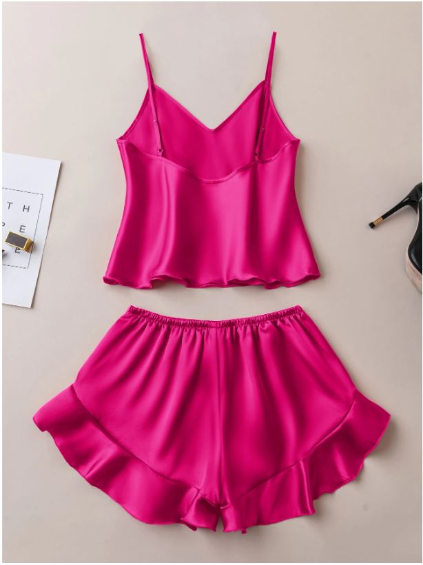 Women’s SKin Silk Nightsuit Set – 2 Piece Sleeveless Cami Top & Ruffle Hem Shorts | Luxury Soft Sleepwear & Loungewear