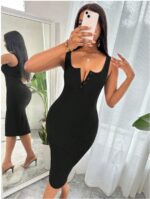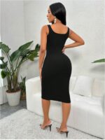 Women’s Sleeveless Black Bodycon Midi Dress – Chic & Elegant Fit