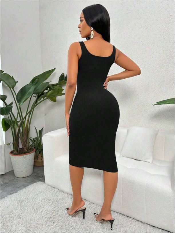 This sleek sleeveless bodycon midi dress features a flattering silhouette that hugs curves for a stylish and confident look. Crafted from a smooth and stretchy fabric blend, it offers both comfort and sophistication — perfect for date night, parties, or evening outings.